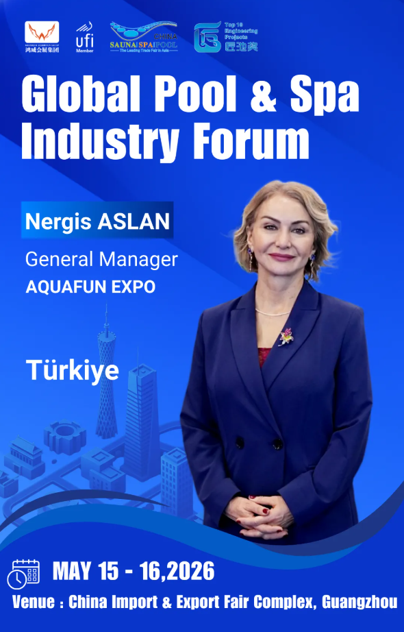 Nergis Aslan女士将深度解析土耳其及中东地区泳池SPA产业格局、市场机遇与发展趋势,以国际化视角与一线实战经验,为全球行业同仁带来前沿洞察与合作新思路,推动中外产业资源对接、技术互鉴、市场共拓,为全球泳池 SPA 行业高质量发展注入跨国界、跨区域的创新活力与战略灵感。