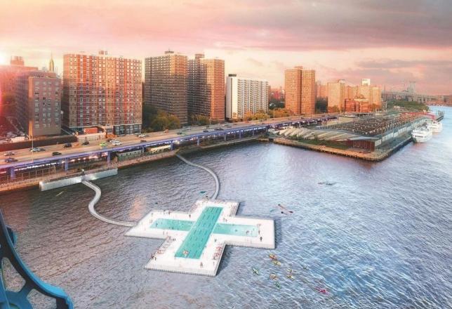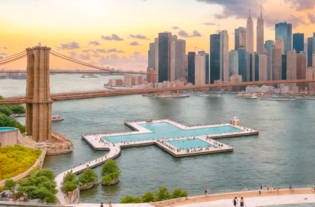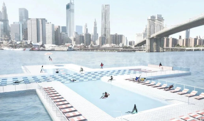 纽约最近空降了一个巨型“泳池盒子”!名叫+POOL的纽约首个漂浮泳池终于登场了,停靠地点在布鲁克林红钩码头(Red Hook)!